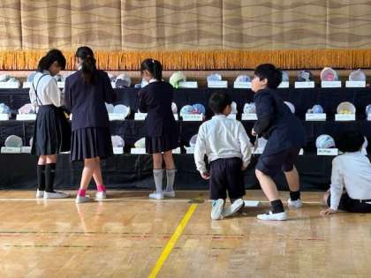 各学年の作品を見て、気に入った作品を選んだり、友達とその良さを話し合ったりしています。