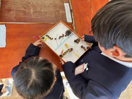 工夫して作った迷路。ドングリを転がしてゴールをめざします。