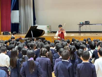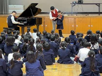 音楽集団エバリーさんに来ていただき、ピアノとバイオリンの演奏を聞かせていただきました。