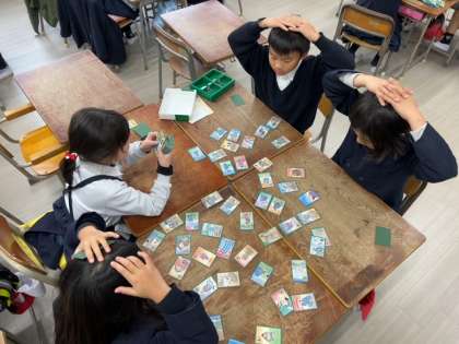 各グループでカルタ遊びで楽しみました。最近あまりやらなくなったカルタですが、今の子どもたちも十分楽しめます。