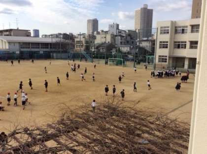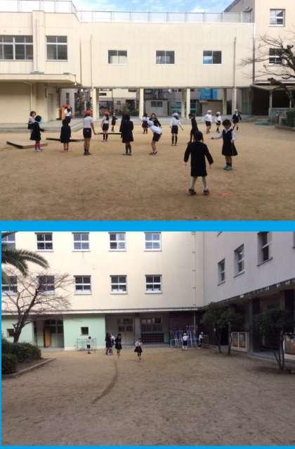 1月12日の15分休憩の運動場や中庭の様子です。例年並みの寒さになっていますが、元気に運動していますね!