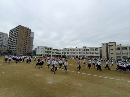 今日から1週間、かけ足週間です。1・3・5年が15分休憩にかけ足をしました。初めは「さむいー」「はしるのやだー」と言っていた子たちも、最初からやる気まんまんの子どもたちも、音楽がかかると走り始め、2〜3周走るとすっかり身体も温まってきて、その子なりのペースで走っていました。来週は、2・4・6年が走ります。