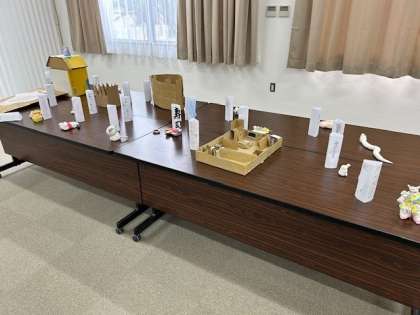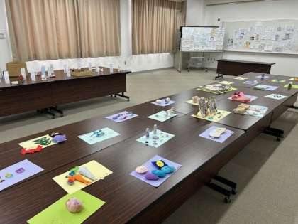 多目的室でクラブ活動の作品展示をしていました。