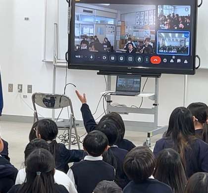 先日の4年生の交流に続いて、今日は5年生が石川県能美市の和気小学校5年生とオンラインで交流をしました。