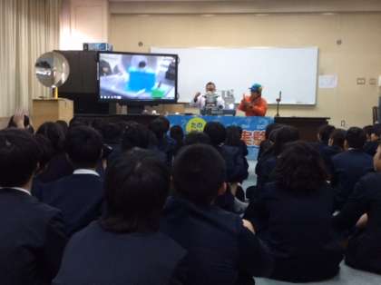 1月19日(火)6年生は、2学級ずつ、西区にある大阪市科学技術館より講師をお招きして様々な実験を交えながら電気や発電のしくみについて学習しました。科学技術館の皆さんは、昨日より実験機器を用意し、楽しい実験を体験させてくださいました。主な内容からいくつか紹介します。