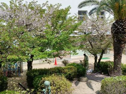 今年は、入学式、始業式まで桜が残る珍しい年でしたが、ついに 桜も 葉っぱだらけになってきました。