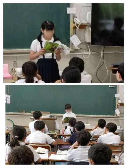 音読の前に「声の大きさを変えたりして、感情を込めて読みます。」などと自分で工夫するところを伝えてから、みんなの方を向いて音読していました。抑揚をつけたり、声色を工夫したりして読めていて感動しました。