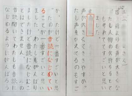 そのあと、ノートを発表しあいました。発表の後には拍手が起こって、とてもいい雰囲気の中で学習が進められていきました。「人の音読を聞くのも楽しかった。」「ためになった。」とクラスの仲間がまたつながっていったように思いました。