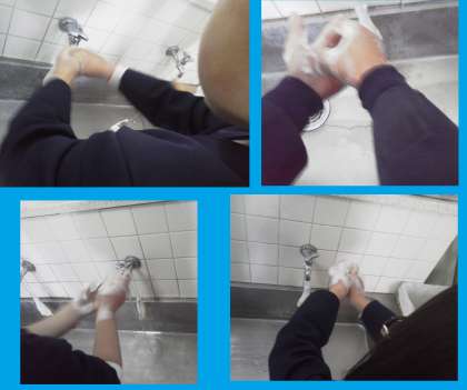 給食前に2年生が、手洗いを頑張っていました。ゴッシーの歌を聞いて、親指や、指先まで丁寧にあらっています。すばらしいですね!