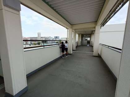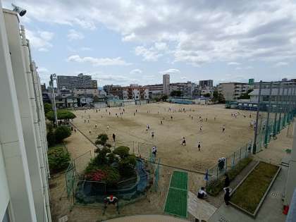 1号館と2号館をつなぐ渡り廊下からは、こんな眺めです。