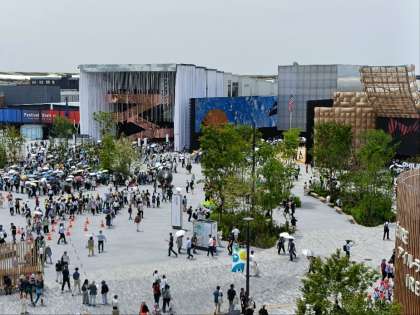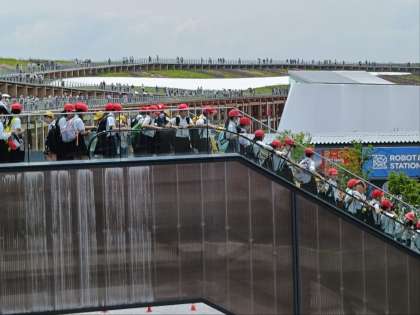 大屋根 リングからエスカレーターを使って下に降り、リングの下をくぐってヘルスケア