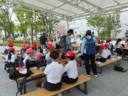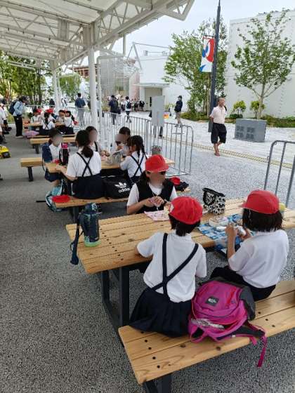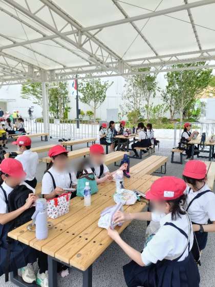 清潔なテーブルでのんびりと食べています。とても楽しそうです!!
