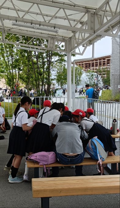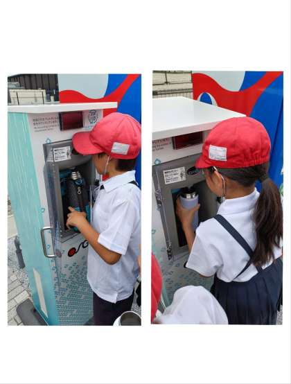 すぐ外に、冷たい水を給水できる機械があるのでお茶が足りなくなってきた子が並んでチャージしていました。