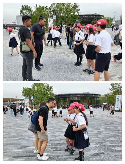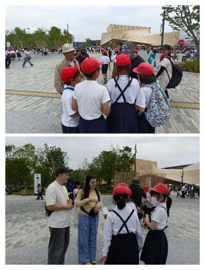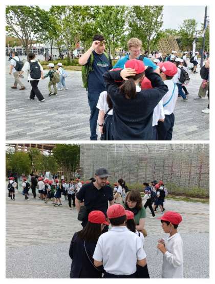 子どもたちは、最初はドキドキしていたけど、強面の方でもものすごい笑顔で、一生懸命ゆっくりな英語で答えてくださったりする中で、握手したり、お互い have a nace day!と手をふったりしながらだんだん慣れてきました。開始6分後くらいには、どの班も自分から積極的に話しかけることができるようになりました。すばらしい成長を見せてくれた17分間でした!!!