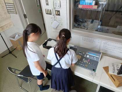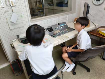 毎日の朝の放送、給食の時の放送、掃除の時間の放送など、明るいアナウンスで放送委員会の児童が呼びかけています。放送機器を手慣れた手つきで操作し、CDで音楽を流すこともやっています。