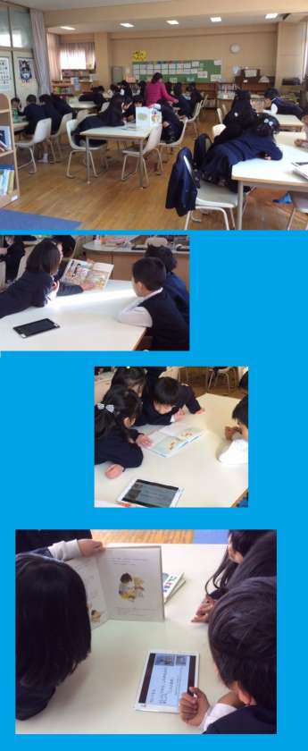 昨年度の校長戦略予算で購入したタブレットを活用した読書学習を紹介します。2月4日(木)2時間めから4時間めに図書館担当の先生の学級で公開授業を実施しています。2時間め2年生の様子です。楽しそうにそして集中して読書できていますね!