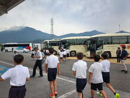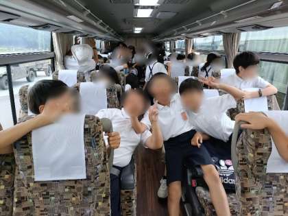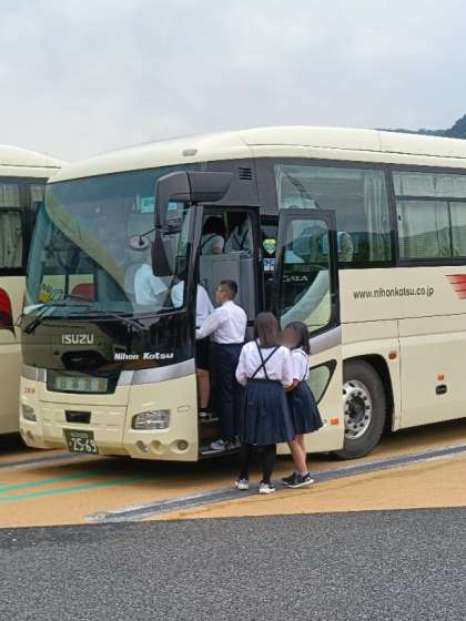 どのバスも、DVDのアニメを見て、ちょうど終わった頃に南条SAに到着しました。
