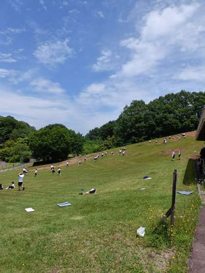 写真では、遠すぎて伝わりませんね。青空にキャーキャーうれしそうな声が響いています。