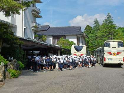 バスの窓から 宿が見えた時 子ども達から「うおー」と歓声が上がりました。
