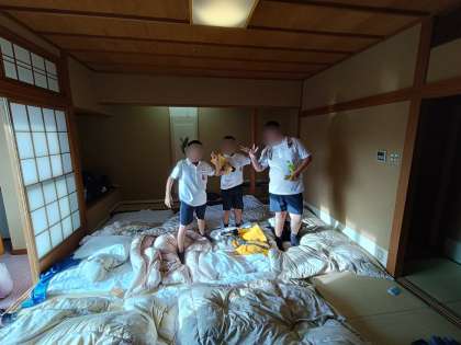 「寝れましたか?」と聞くと早い子は4時くらいから起きてたみたいで日の出がキレイだったと話してくれました。
