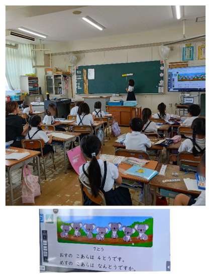 今日の問題文は、「オスのコアラは 4頭です。メスのコアラは何頭ですか?」というもので、コアラが全部で7頭いることも問題文の中には書いてありません。図を見て自分で数えることを求められています。この問題がたし算なのかひき算なのか、見当をつけるための言葉も見つかりません。