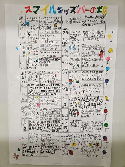 高倉小学校でいちばん楽しいイベントのスマイルキッズパークが7月3日に予定されています。スマイルキッズパークは、1年生から6年生までのたてわり班(キッズファミリー班)で、校内でお店を出して、みんなでお店巡りをします。いわゆる文化祭の小学生版のようなイベントです。