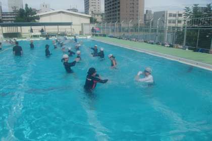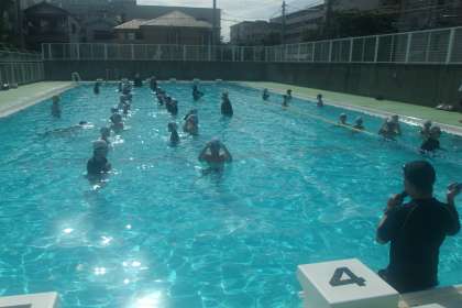 夏休みがスタートしました。泳力をつけてほしい5・6年生児童と大阪市児童水泳記録会の参加者と対象に、水泳特別練習を実施しています。夏休みに入ったばかりですが、たくさんの児童が参加していました。有志の先生方10人以上が指導に参加していたので、まるで課業中のような賑わいのプール水泳でした。