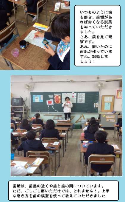 3月1日(火)2年生の各学級で、大阪市教育委員会より歯科衛生士の先生にきていただき「歯と口の健康教室」を行いました。