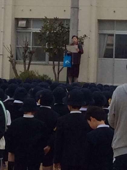 3月7日(月)の児童朝会で、学校長が、5年生児童の意見文を読み、紹介しました。この意見文は、学校代表として「大阪の子」作文集に出品するものです。5年生児童は、タニア・シュテーブナー作の「動物と話せる少女リリアーネシリーズ『イルカ救出大作戦』」を読み、日々の学習や生活と重ね合わせ、意見文を書きました。