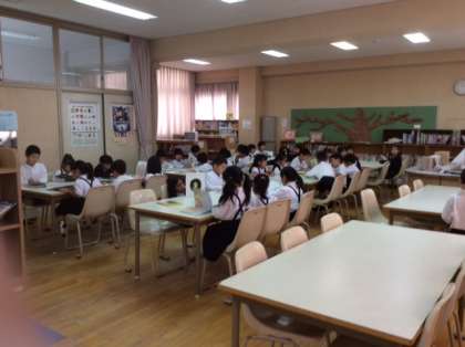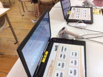 それに、図書係の1年生が、先生の指示を聞いて、バーコードリーダーを使い、返却作業を上手にしていましたよ!図書室には、いろいろな本がいっぱいあります。どんどん読んで読書が好きになってほしいと願っています。