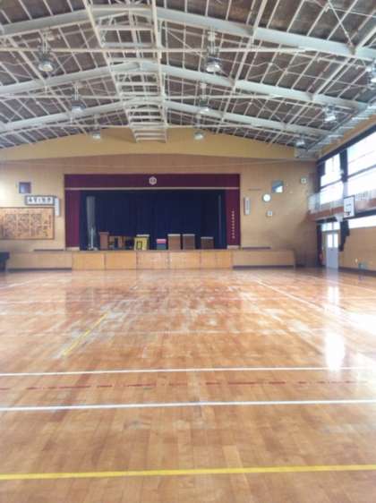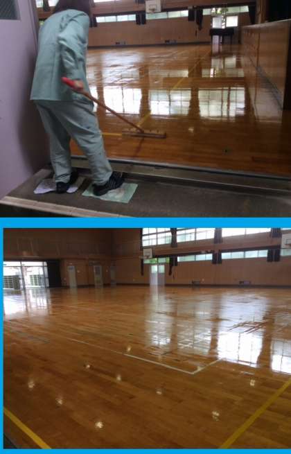 ↑ 高倉小学校の講堂は、学校の体育学習、PTAの体育活動、地域の体育活動で多くの方々に利用していただいています。ところが、床がすべりやすいという問題がありました。