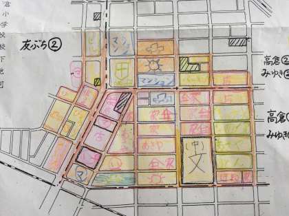 3年生は社会科学習の一環として校区探検に行ってきました。高倉校区を6つの地区に分けて、分担して調べました。事前に学習した地図記号を使って、白地図に書き込んでいくことができました。また、保護者の方、地域の方、多数の方の協力もあって子どもたちも無事に学習することができました。ありがとうございました。