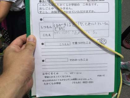 子どもたちは、地域で知ったことをメモし、学校へ持ち帰りました。