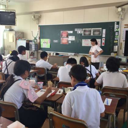 6月6日(月)6年生の各学級で歯と口の健康教室を実施しました。これは、歯と口の健康を守る力を育てるため、毎年6年生を対象に教育委員会から歯科衛生士の先生をお迎えして実施しているものです。
