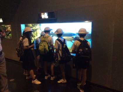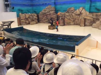 行動班で、計画を立てて見学しています。アシカショーでは、昨夜のセミナーでお話をして下さった飼育員の方と再会することができました!
