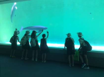 お土産にする小物に色つけをしたり、セイウチショーを見たり、スナメリを観察したり、仲良く活動しています。