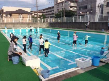 プール開きに向け、6月24日放課後、教職員でプールを清掃しました。