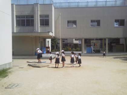 7月5日、1時間目と2時間めの間の休み時間に、トントントントンととってもリズミカルな音がします。中庭に出てみると、ジャンピングボードをつかってなわとびを楽しんでいる子どもたちを見つけました。ちゃんと順番を守り、リズミカルに跳んでいます。ギラギラ日差しもなんのその、とっても元気で頼もしいですね!