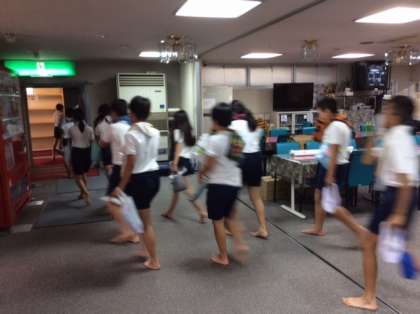 宿舎の方の全面協力の元、3階で火災発生という想定で避難訓練をしました。タオルで口元を押さえなかった、しゃべった、道路を渡るときに安全確認をしなかった、走ったなど様々な理由で、全員できるまで何度もやり直してくださいました。やり直す度に命を守る行動について一人一人が考え行動しました。宿舎の皆さん、ありがとうございました。