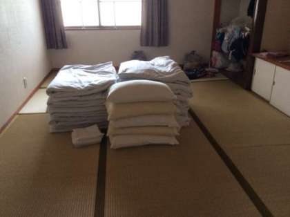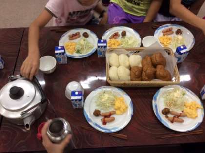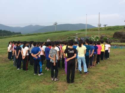 27日最終日、お天気が回復し、外で朝の集いをしました。爽やかです。お布団もきっちりたたみ、朝ごはんを食べています。