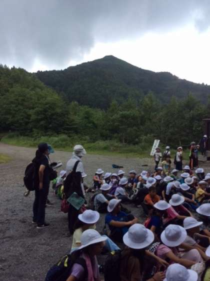 下山途中の休憩場所から、鉢伏山を見上げ、思わずみんなで拍手しました。とってもしんどかったけれど、班で励まし合い、やりとげた素晴らしい思い出の登山となりました。