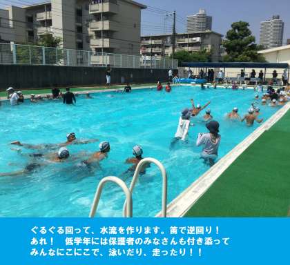 7月31日(日)恒例のPTA親子ふれあいプールが高倉小学校プールで行われました。普段のプール学習やプール開放とは違い、1年生から6年生までの児童とおとうさんやおかあさん、小さな妹や弟も一緒です。楽しいプログラムに笑顔いっぱいのPTAふれあいプールとなりました!