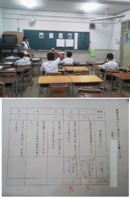 どの子も一生懸命学習しています。そして、学習の最後に、その時間の学習を一人一人振り返っていました。