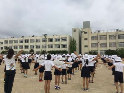 運動委員会の児童が前で見本をみせながらの練習でした。