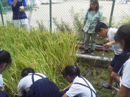 とってもかわいい田んぼですが、自分たちで田植えをした稲が実り、収穫の喜びをかみしめることができました。