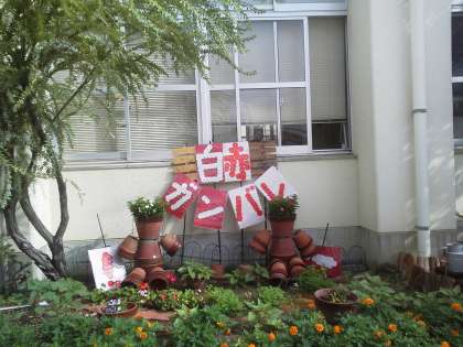 PTA環境緑化委員会の皆さんが一年を通して子ども達の為に趣向を凝らしてくださっているPTA花壇が運動会バージョンになりました。とっても素敵ですね!