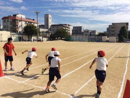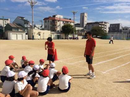 本日4年3組と4組が5・6時間目に体力運動能力向上のための特別授業を受けました。今回の授業も都島区役所の学校支援事業の一環として行われ、より速く走るためのトレーニングを行いました。派遣されたインストラクターの指導のもと、走るときの基本姿勢や腕の振り方、足の使い方について学習しました。
