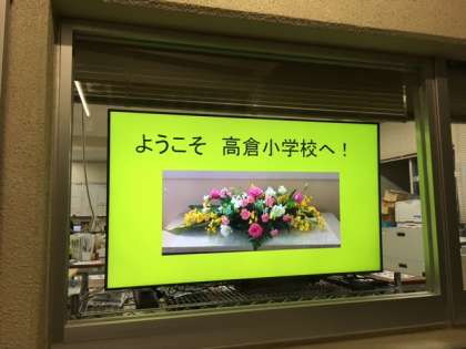 10月19日(水)学校の玄関ホールに大型モニターを設置しました。本年度の戦略予算を活用し、お知らせ、子ども達の学校生活の様子や学校の取り組みをより多くの皆様にご紹介しようと設置したものです。