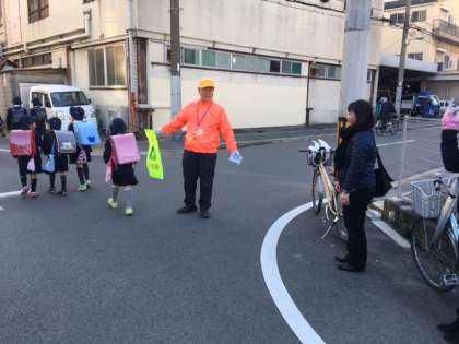 今日は早朝から気温が一気に下がり、寒くなりましたが、それでもオレンジ隊・地域の保護者の方々は、いつものようにポイントに立って子どもたちに笑顔で声をかけてくださいます。