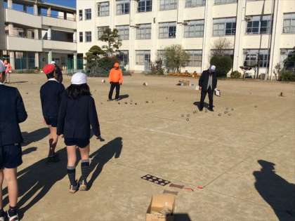 12月15日(木)の2・3時間目に、高倉老人クラブの方々と5年生が「高倉地域世代交流活動(ペタンク)」を行いました。